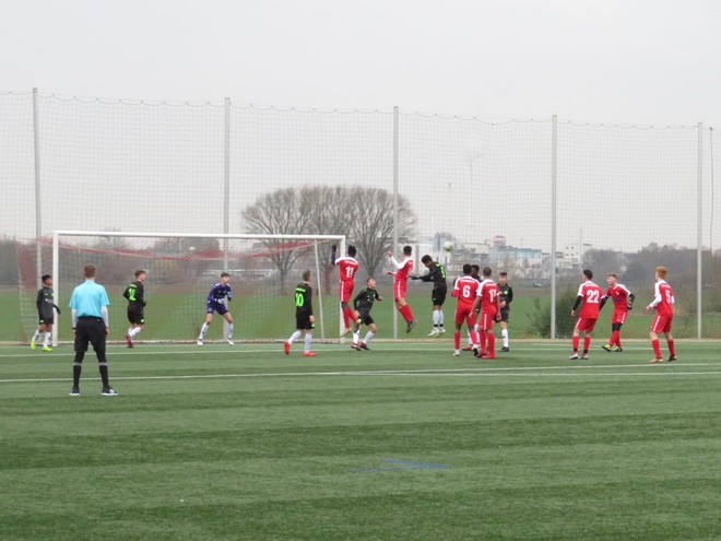 Vor einer guten Zuschauerkulisse inklusive unserer U14, bekamen wir es zum Rückrundenstart gleich mit unserem Tabellennachbarn der U14 der „Roten“ zu tun. Unsere Gäste hatten sich wohl vorgenommen uns etwas zu ärgern, wie der Gästetrainer nach dem Spiel betonte, was am Ende jedoch nicht gelang. Von Anfang an waren unsere Jungs da und erspielten sich alleine vier hochkarätige Chancen, die entweder am Aluminium landeten oder knapp vorbei gingen. Spielerisch wußte unser Gast zu gefallen und durch hohes Pressing schlich sich der ein oder andere „Stockfehler“ und Ballverluste bei uns ein. Außer einer gefährlichen Freistoßsituation gab es keine nennenswerten Chancen unserer Gäste und so hielten wir den Kasten dicht. Schließlich führte ein kurz vor der Halbzeit gegebener Elfmeter zur längst verdienten 1:0 Führung für uns. Die Halbzeitansprache des Trainers hatte wohl gewirkt, denn mit Beginn der 2. Halbzeit gelang dem Team direkt das schön herausgespielte 2:0. Nun schien es nur noch Formsache und mit der nötigen Ruhe hätte es ein sicherer Sieg werden können. Doch eigene Unkonzentriertheiten und Abspielfehler ließen unsere Gäste aufkommen und plötzlich fiel aus dem Gewühl heraus der Anschlußtreffer zum 2:1. Unsere Jungs erspielten sich trotzdem weitere gute Möglichkeiten, die aber nicht konsequent zum Abschluß gebracht wurden. Es hätte so einfach sein können, aber so ging das Spiel hin und her und auch unsere Gäste kamen nun zu gefährlichen Torchancen. 5 Minuten vor dem Ende der Partie zeigte der Unparteiische dann erneut auf den Elfmeterpunkt, doch dieses mal gegen uns. Das 2:2 ließ uns alle ungläubig dreinschauen und unsere Gäste in emotionalen Jubel ausbrechen. Sollten unsere Jungs das Spiel noch aus der Hand geben? Hektik auf beiden Seiten, aber dann schließlich doch das erlösende 3:2, das dem Team am Ende den verdienten Sieg und damit einen guten Start in die Rückrunde brachte. Weiter so Jungs!!